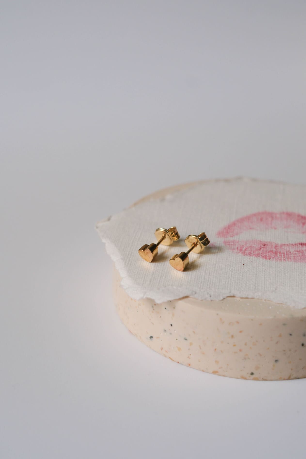 Arracades de plata de llei 925 xapada en or de 18 k amb forma de cor. Mida: 0,4 cm.