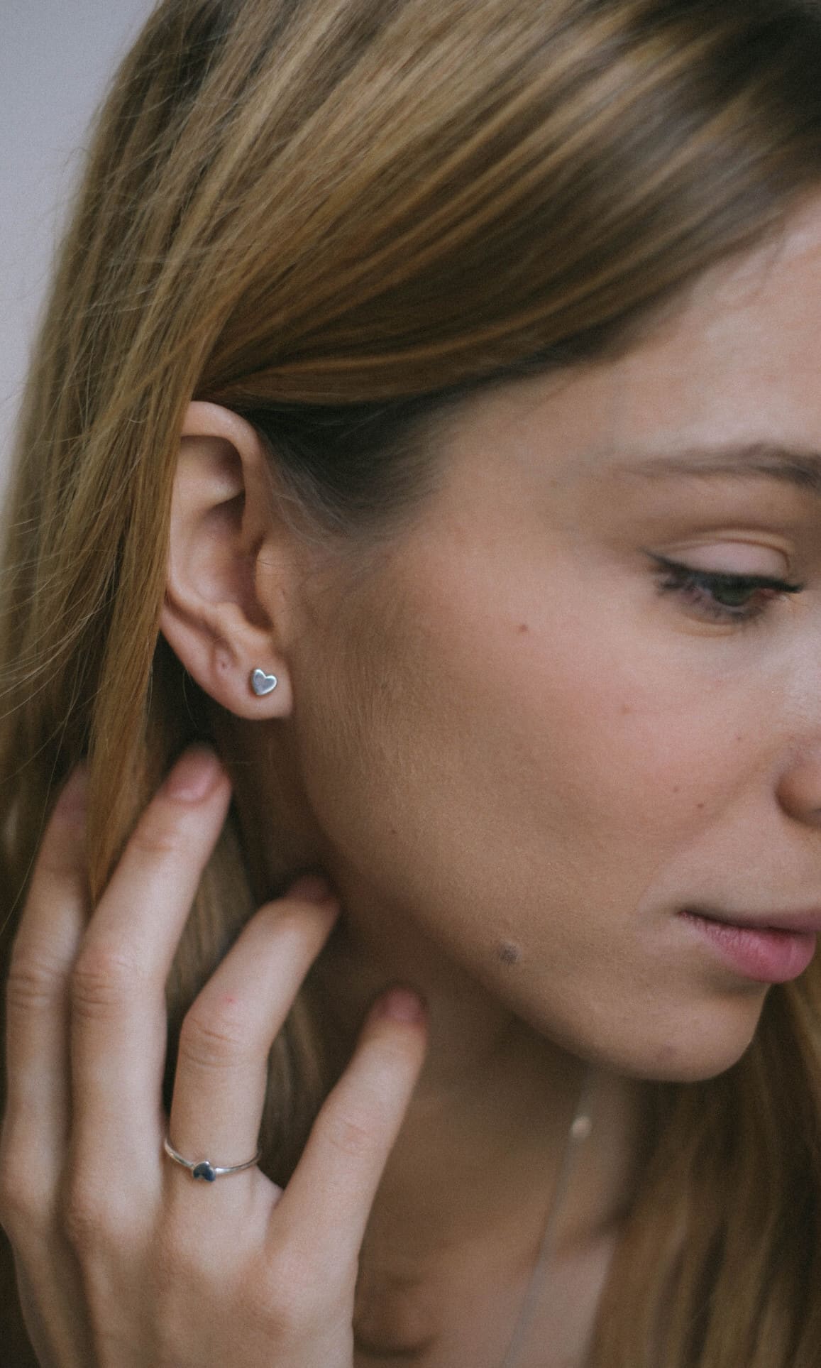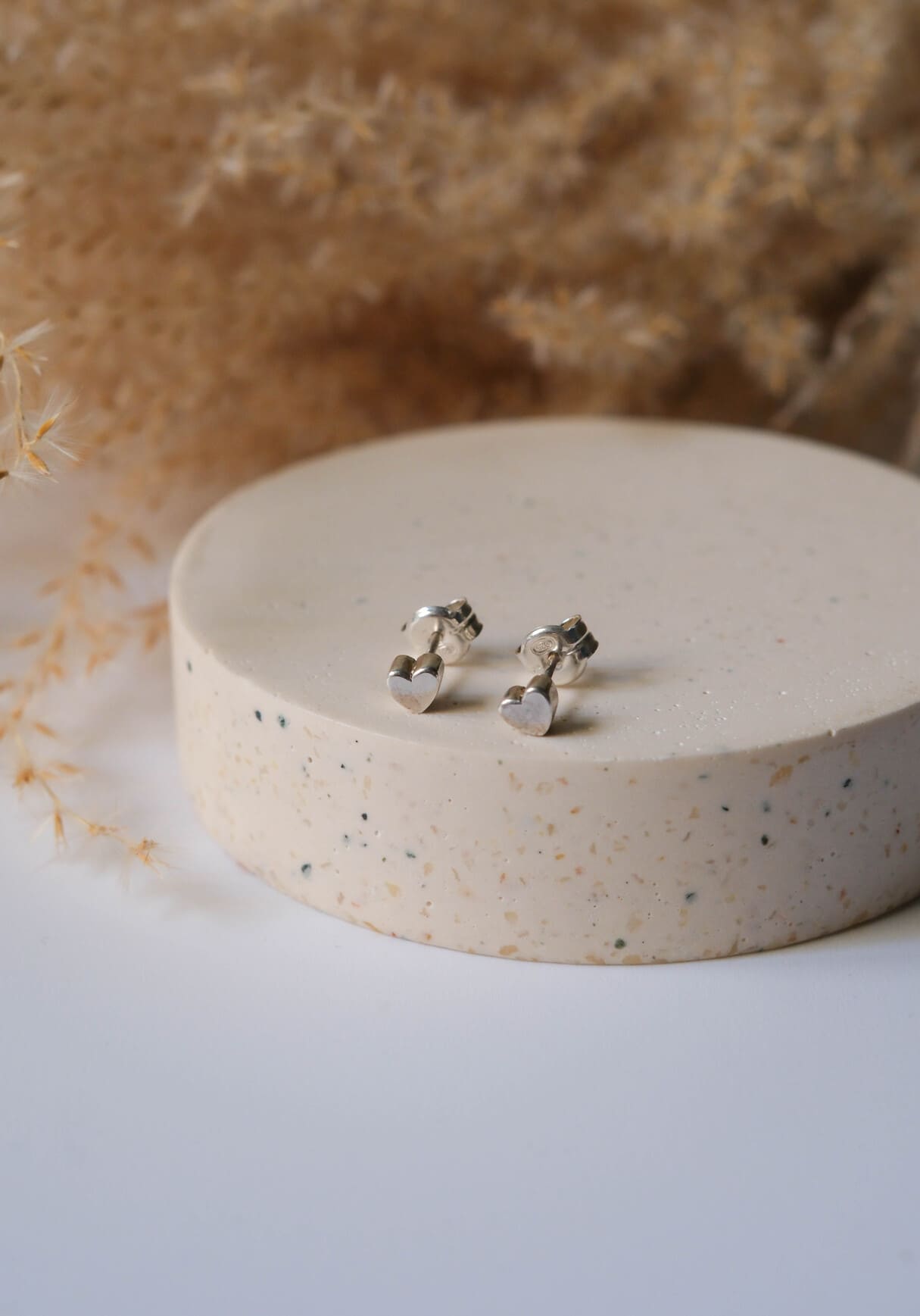 Arracades de plata de llei 925 en forma de cor. Mida: 0,4 cm.