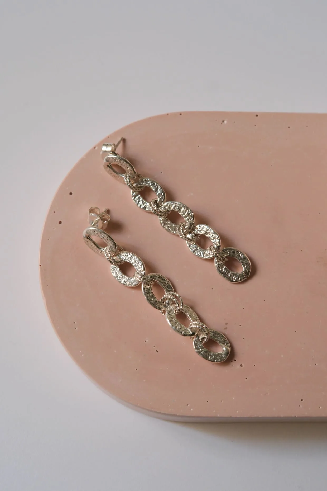 Arracades de plata de llei 925 amb eslabons martelè gruixut. Mida: 6 cm.