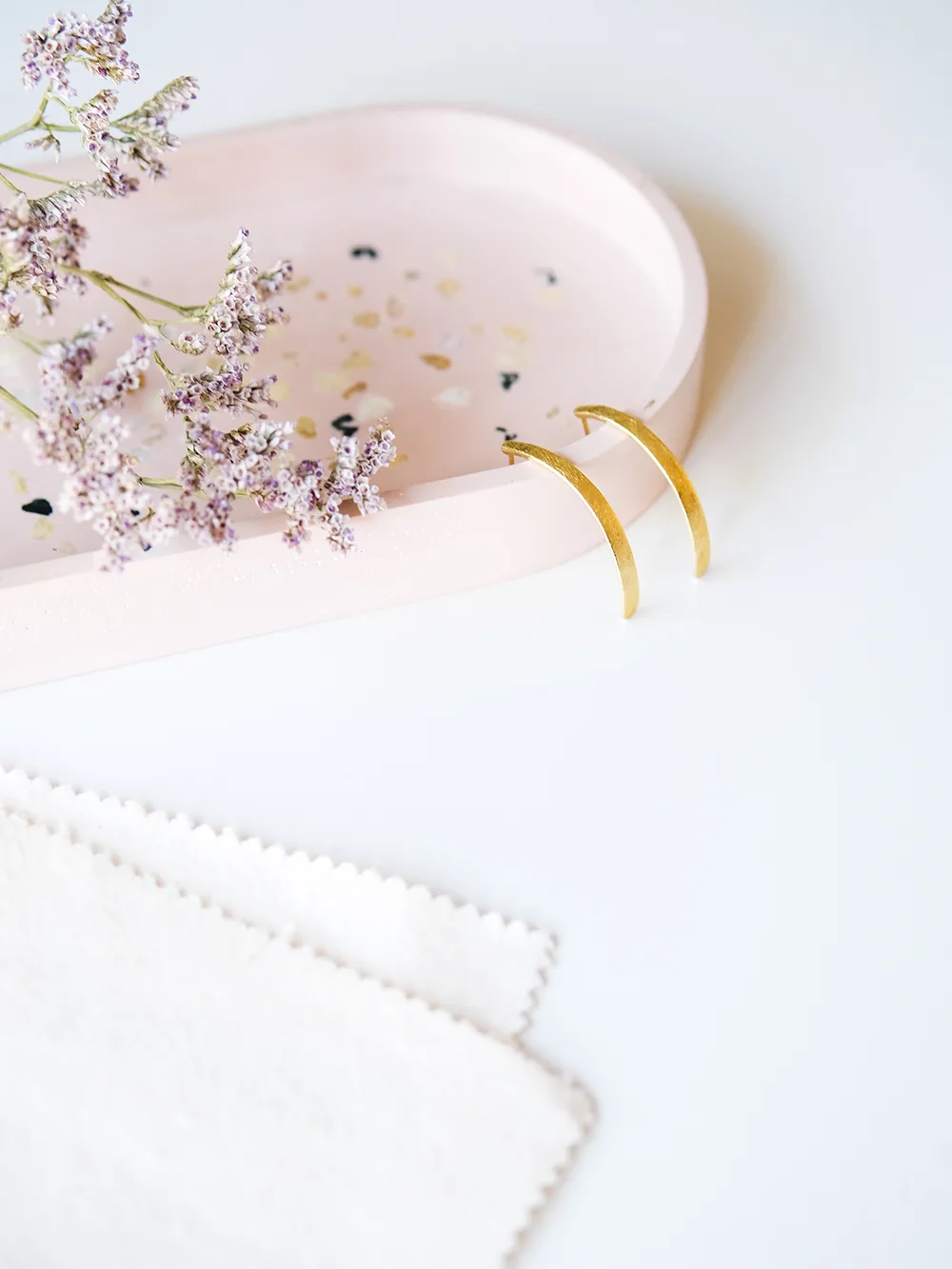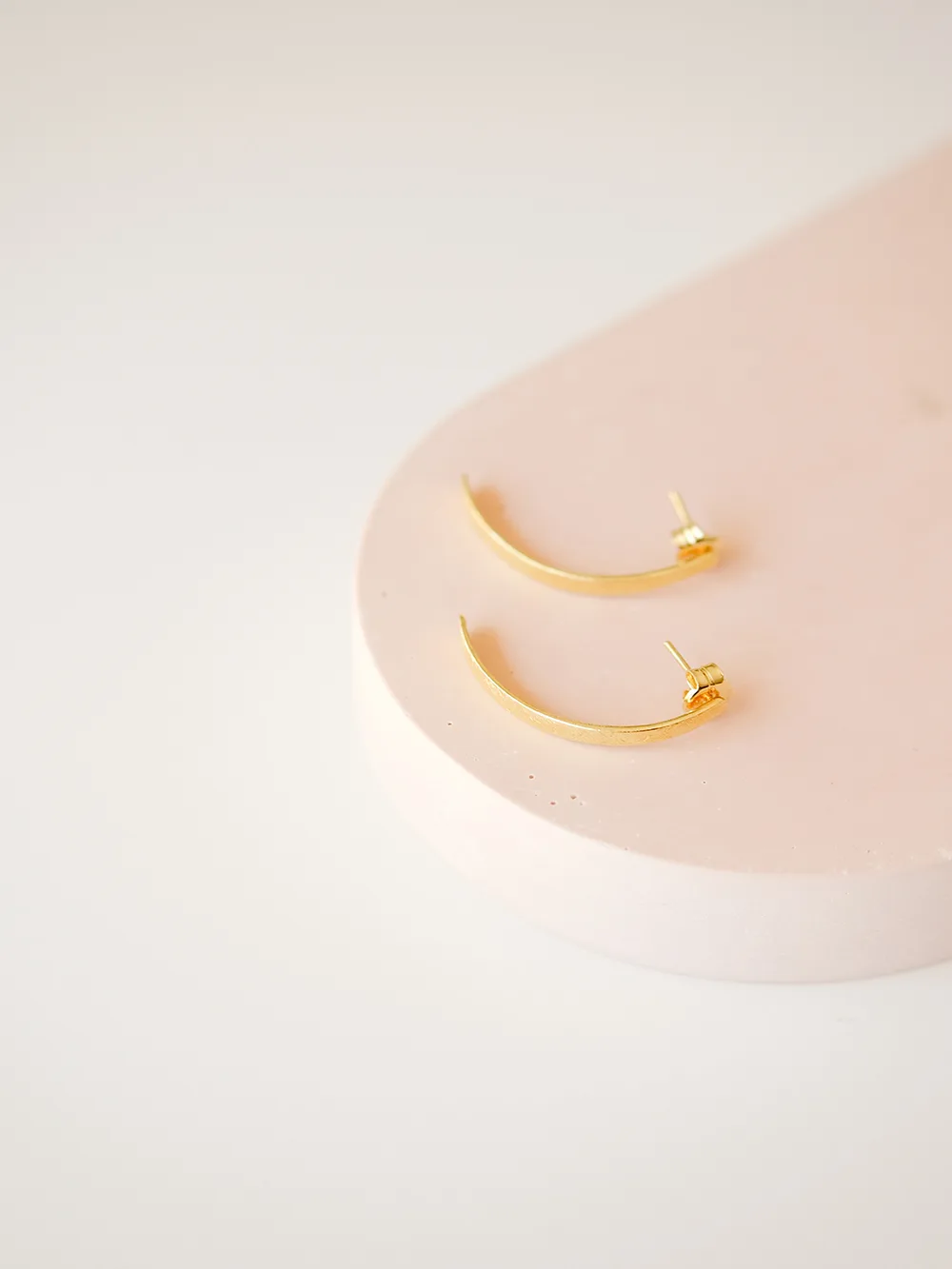 Pendientes de plata de ley 925 chapadas en oro de 18 k, con forma de arco y acabado diamantado. Largo: 4 cm.