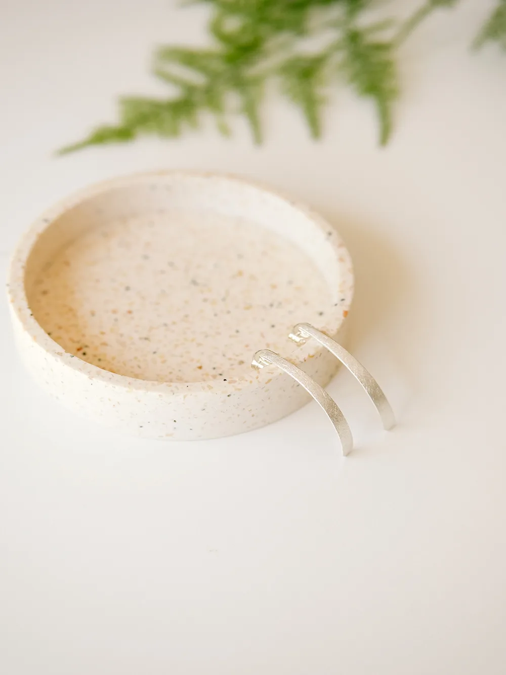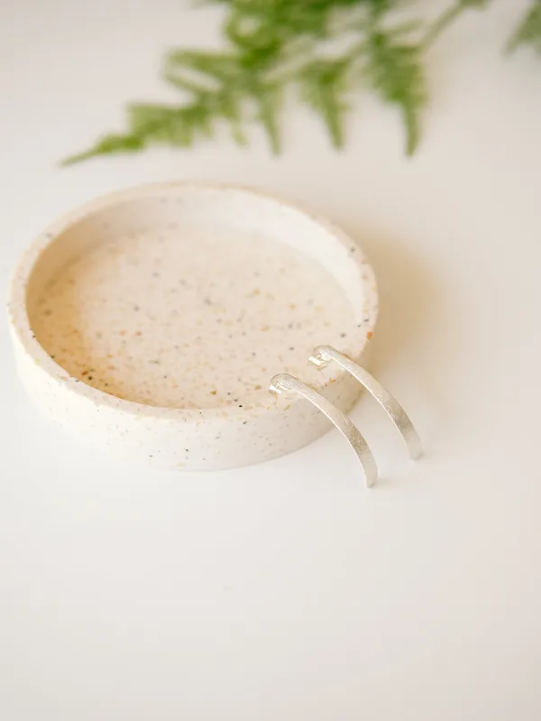 Pendientes de plata de ley 925 con forma de arco y acabado diamantado. Largo: 4 cm.