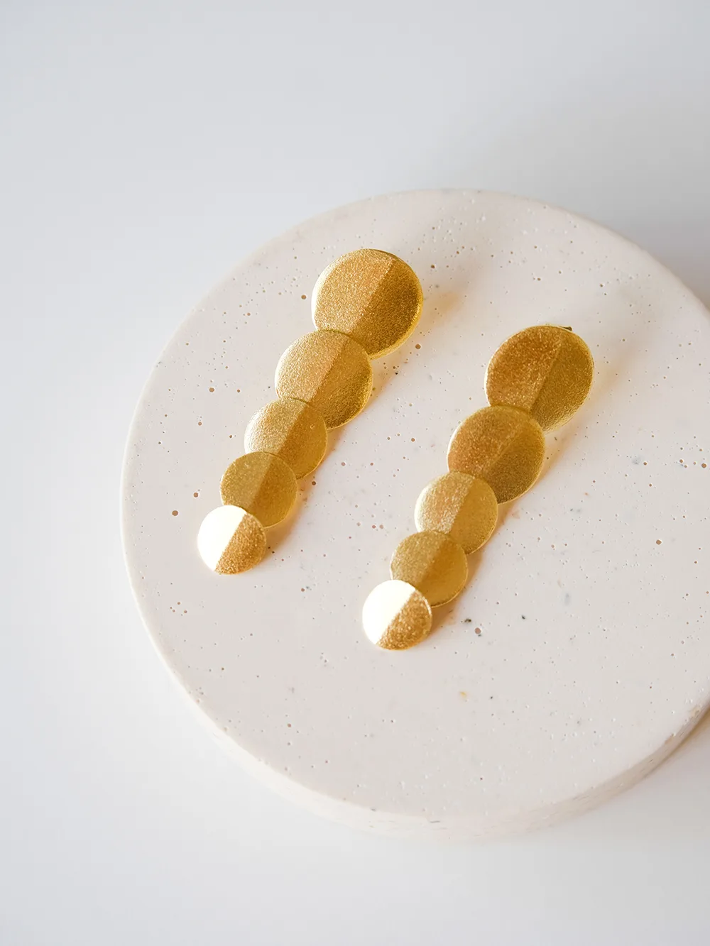 Pendientes de plata de ley 925 chapadas en oro de 18 k, con cinco piezas ovaladas con movimiento y acabado mate. Largo: 5 cm.