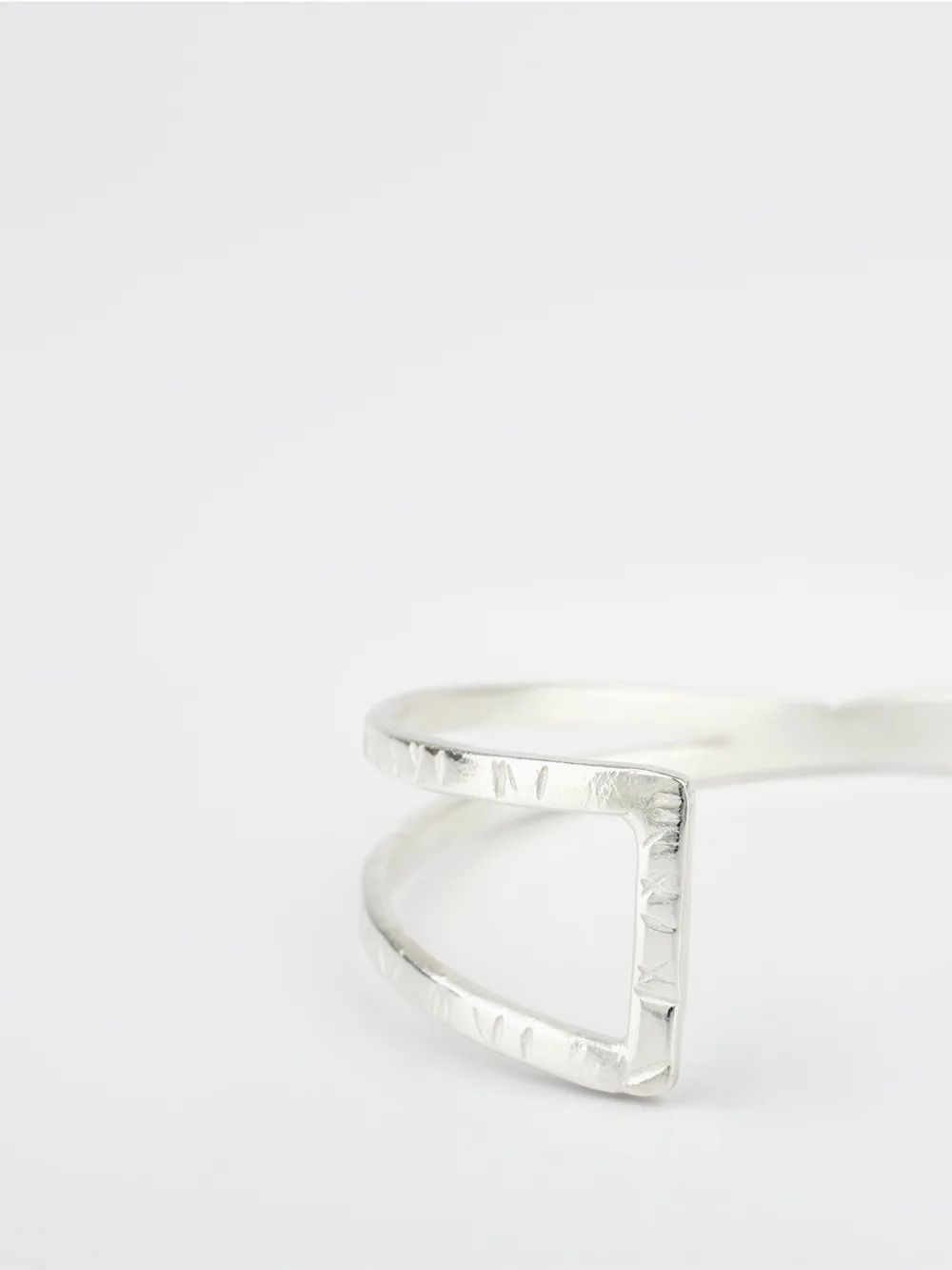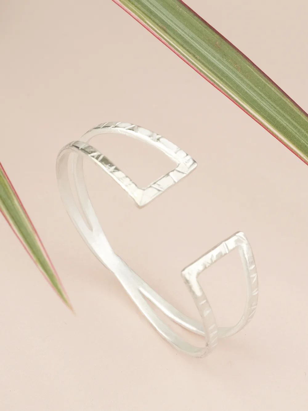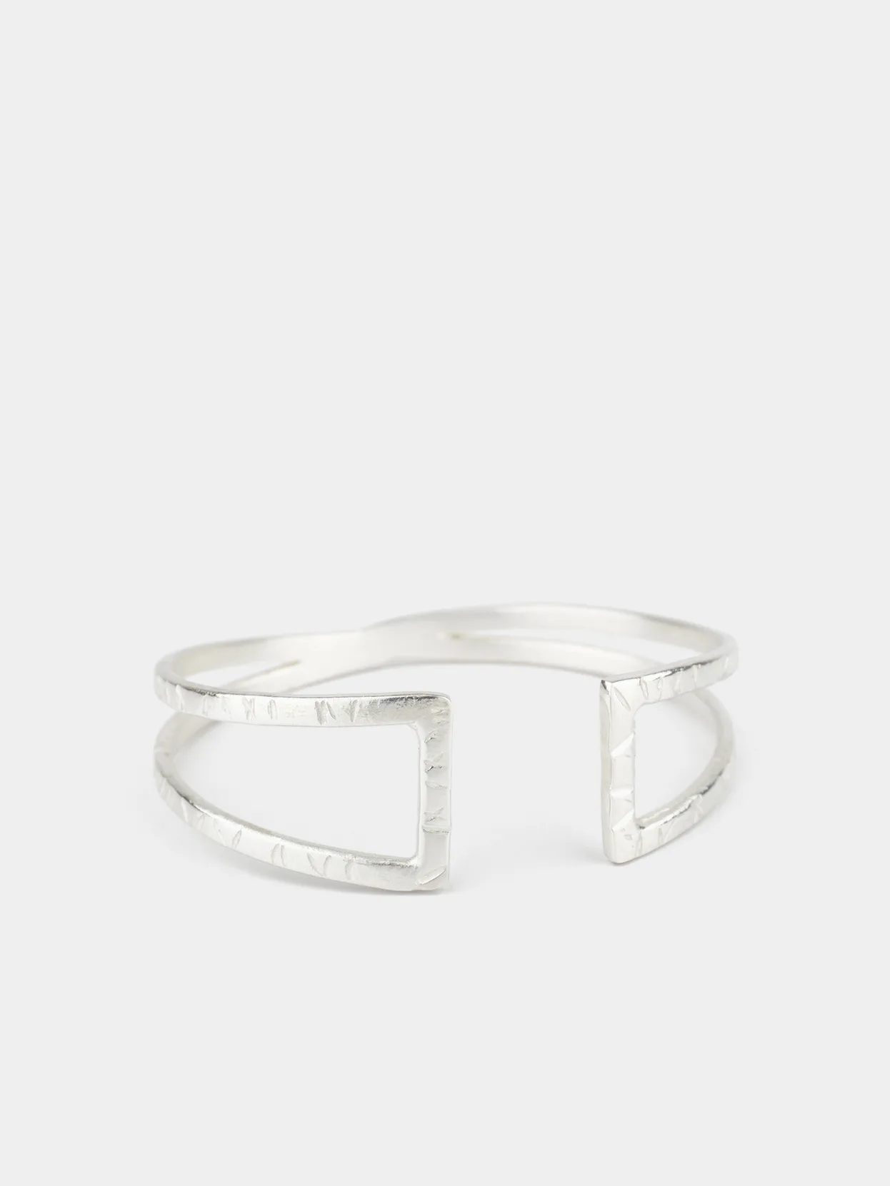 Pulsera de plata de ley 925, de líneas cruzadas, hecha con la técnica martelé. De la colección BCN. Medida: 6,7 cm de diámetro.