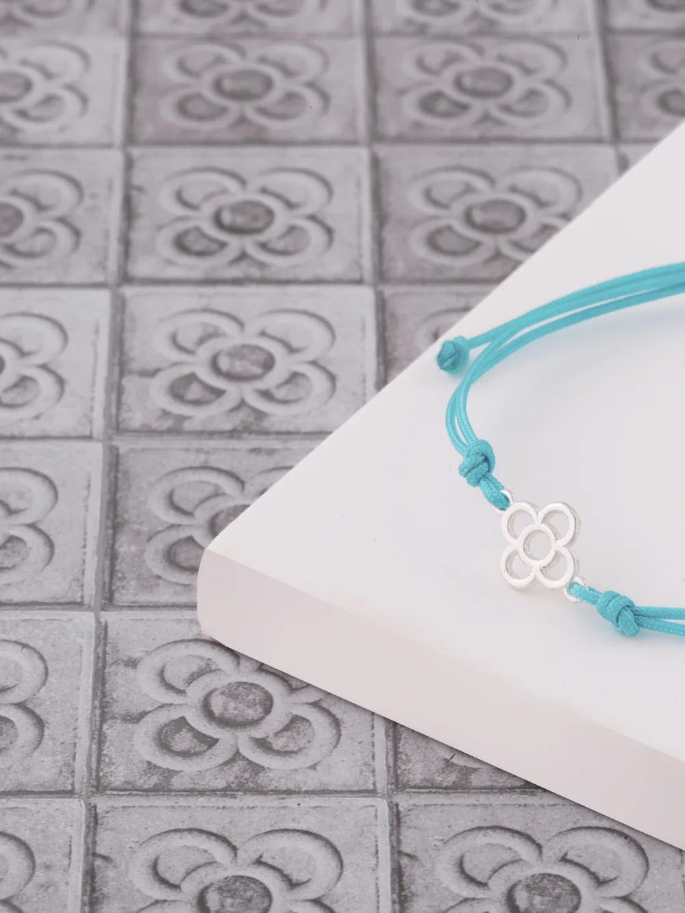Pulsera de plata de ley 925 con el motivo de la flor del azulejo de Barcelona. Tamaño: regulable.Tamaño: regulable.