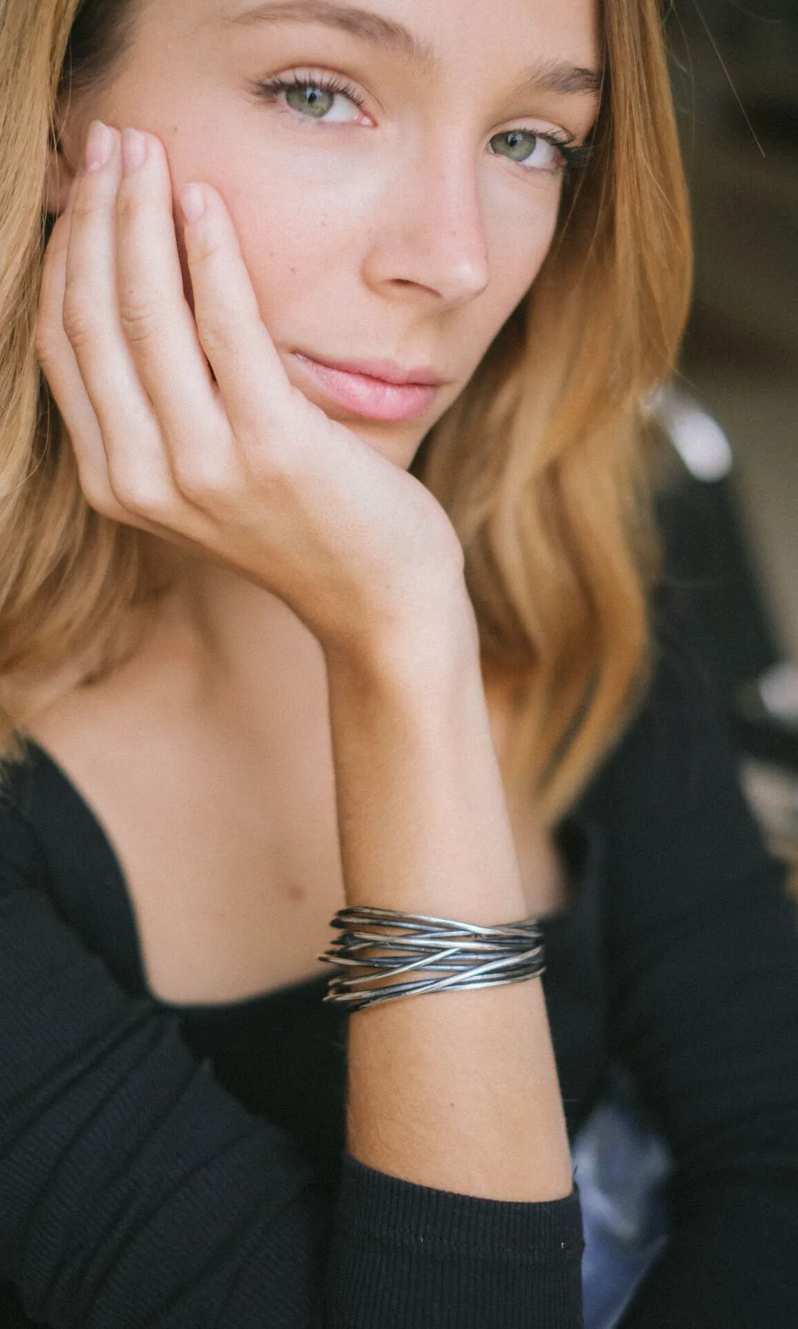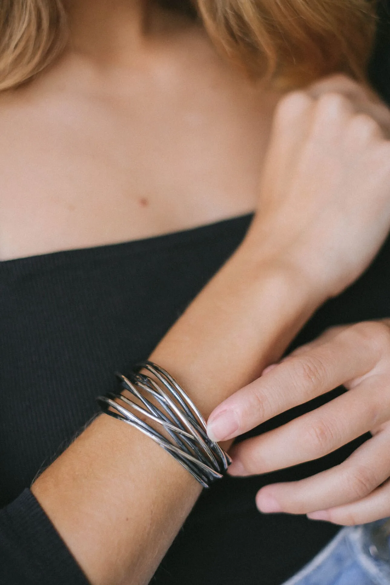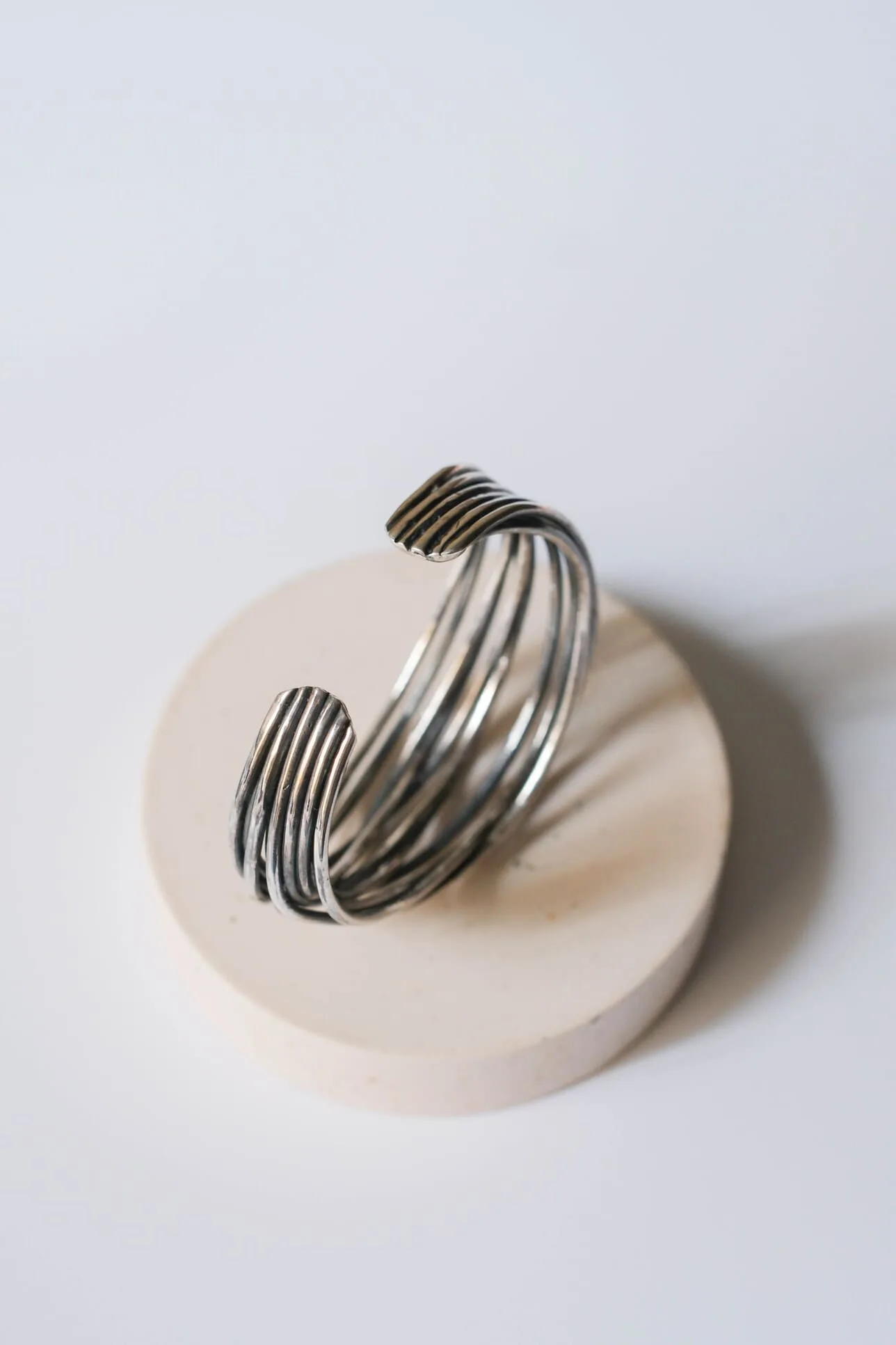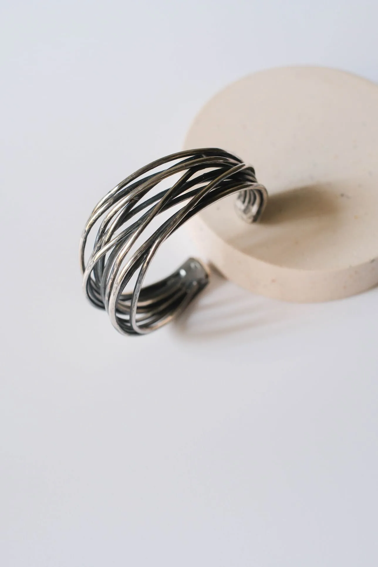 Pulsera de plata de ley 925 con acabado envejecido. Medida: 6 cm de diámetro.
